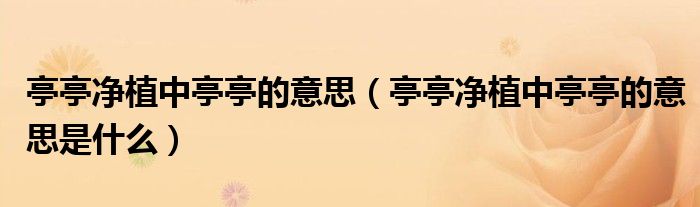 大家好,伊人来为大家解答以上问题。亭亭净植中亭亭的意思,亭亭净植中亭亭的意思是什么很多人还不知道,现在让我们一起来看看吧!