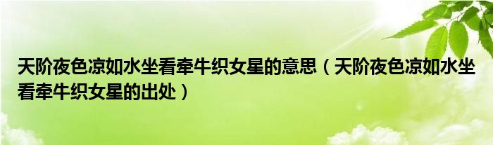 大家好,伊人来为大家解答以上问题。天阶夜色凉如水坐看牵牛织女星的意思,天阶夜色凉如水坐看牵牛织女星的出处很多人还不知道,现在让我们一起来看看吧!