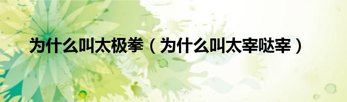 大家好,小生来为大家讲解下。为什么叫太极拳,为什么叫太宰哒宰很多人还不知道,现在让我们一起来看看吧!