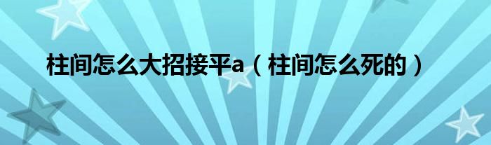 大家好,小生来为大家讲解下。柱间怎么大招接平a,柱间怎么死的很多人还不知道,现在让我们一起来看看吧!