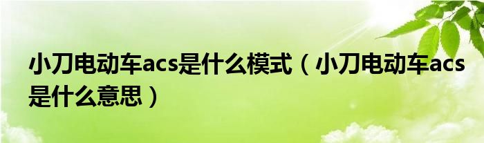 大家好,小生来为大家讲解下。小刀电动车acs是什么模式,小刀电动车acs是什么意思很多人还不知道,现在让我们一起来看看吧!