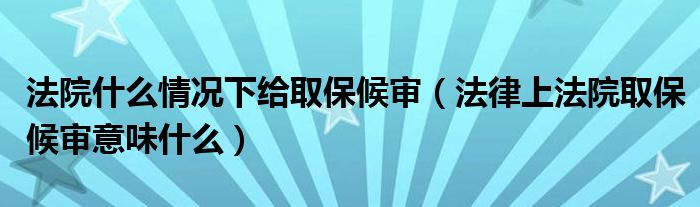 大家好,小生来为大家讲解下。法院什么情况下给取保候审,法律上法院取保候审意味什么很多人还不知道,现在让我们一起来看看吧!