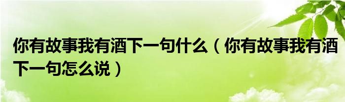 大家好,小生来为大家讲解下。你有故事我有酒下一句什么,你有故事我有酒下一句怎么说很多人还不知道,现在让我们一起来看看吧!