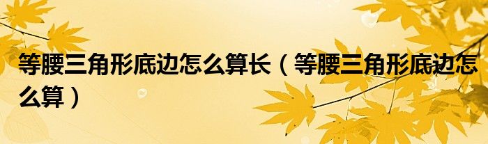 大家好,小生来为大家讲解下。等腰三角形底边怎么算长,等腰三角形底边怎么算很多人还不知道,现在让我们一起来看看吧!