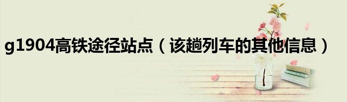 大家好,伊人来为大家解答以上问题。g1904高铁途径站点,该趟列车的其他信息很多人还不知道,现在让我们一起来看看吧!