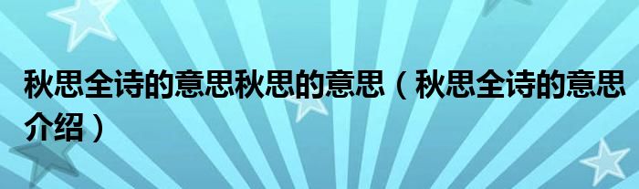 大家好,伊人来为大家解答以上问题。秋思全诗的意思秋思的意思,秋思全诗的意思介绍很多人还不知道,现在让我们一起来看看吧!
