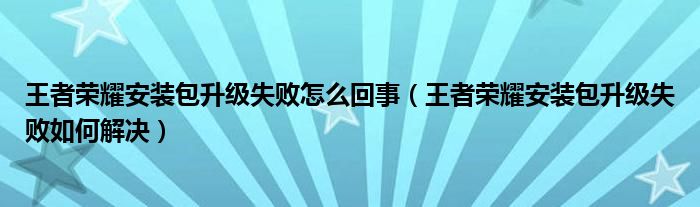 大家好,伊人来为大家解答以上问题。王者荣耀安装包升级失败怎么回事,王者荣耀安装包升级失败如何解决很多人还不知道,现在让我们一起来看看吧!