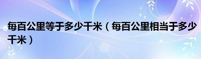 大家好,小生来为大家讲解下。每百公里等于多少千米,每百公里相当于多少千米很多人还不知道,现在让我们一起来看看吧!