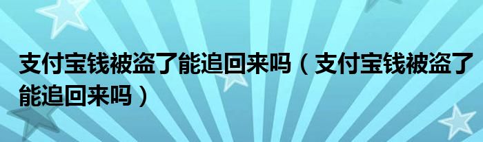 大家好,小生来为大家讲解下。支付宝钱被盗了能追回来吗,支付宝钱被盗了能追回来吗很多人还不知道,现在让我们一起来看看吧!