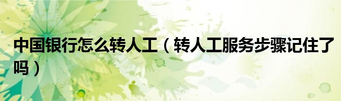 大家好,伊人来为大家解答以上问题。中国银行怎么转人工,转人工服务步骤记住了吗很多人还不知道,现在让我们一起来看看吧!