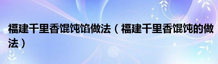 大家好,伊人来为大家解答以上问题。福建千里香馄饨馅做法,福建千里香馄饨的做法很多人还不知道,现在让我们一起来看看吧!