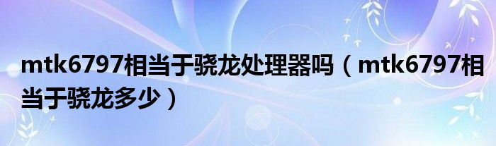 大家好,小生来为大家讲解下。mtk6797相当于骁龙处理器吗,mtk6797相当于骁龙多少很多人还不知道,现在让我们一起来看看吧!