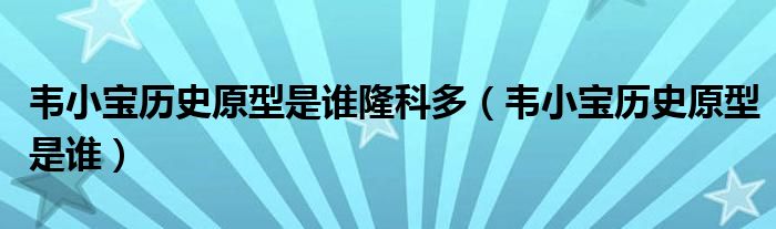 大家好,小生来为大家讲解下。韦小宝历史原型是谁隆科多,韦小宝历史原型是谁很多人还不知道,现在让我们一起来看看吧!