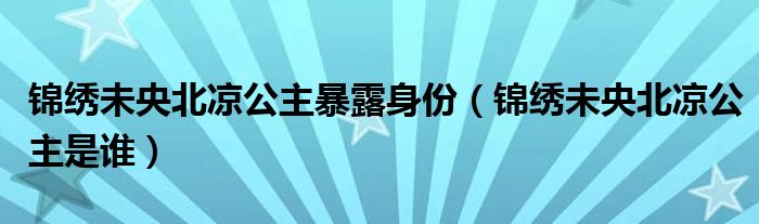 大家好,小生来为大家讲解下。锦绣未央北凉公主暴露身份,锦绣未央北凉公主是谁很多人还不知道,现在让我们一起来看看吧!