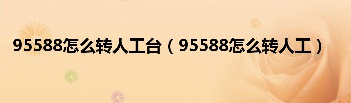 大家好,小生来为大家讲解下。95588怎么转人工台,95588怎么转人工很多人还不知道,现在让我们一起来看看吧!