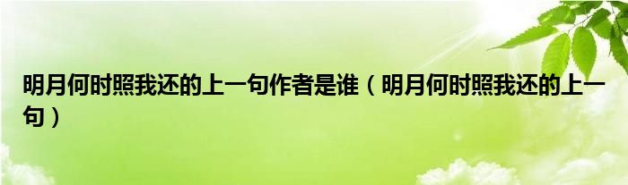 大家好,小生来为大家讲解下。明月何时照我还的上一句作者是谁,明月何时照我还的上一句很多人还不知道,现在让我们一起来看看吧!
