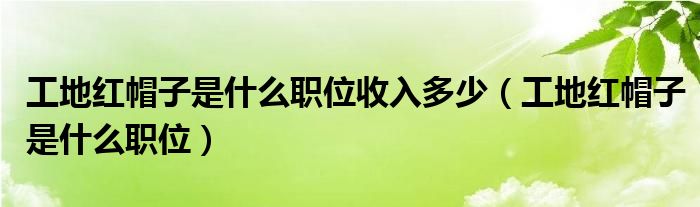 大家好,小生来为大家讲解下。工地红帽子是什么职位收入多少,工地红帽子是什么职位很多人还不知道,现在让我们一起来看看吧!