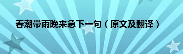 大家好,伊人来为大家解答以上问题。春潮带雨晚来急下一句,原文及翻译很多人还不知道,现在让我们一起来看看吧!