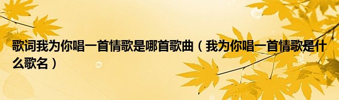 大家好,小生来为大家讲解下。歌词我为你唱一首情歌是哪首歌曲,我为你唱一首情歌是什么歌名很多人还不知道,现在让我们一起来看看吧!