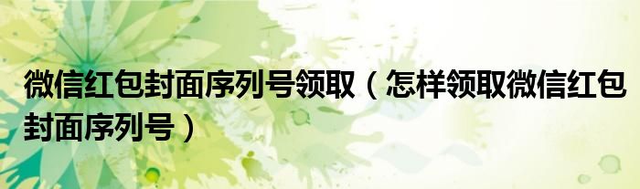 大家好,伊人来为大家解答以上问题。微信红包封面序列号领取,怎样领取微信红包封面序列号很多人还不知道,现在让我们一起来看看吧!