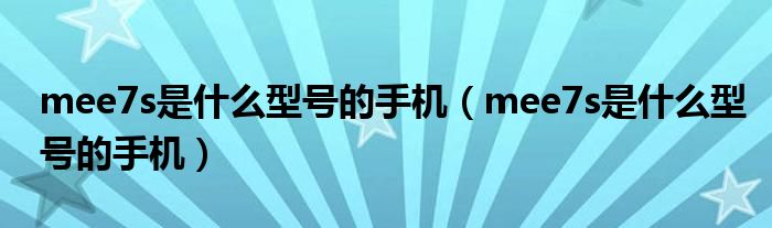 大家好,小生来为大家讲解下。mee7s是什么型号的手机,mee7s是什么型号的手机很多人还不知道,现在让我们一起来看看吧!