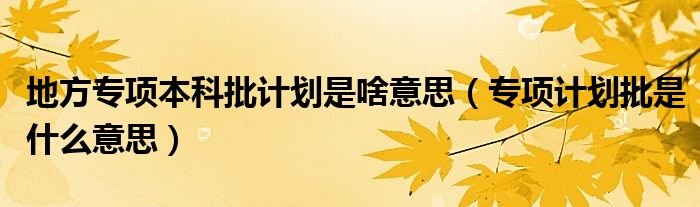 大家好,小生来为大家讲解下。地方专项本科批计划是啥意思,专项计划批是什么意思很多人还不知道,现在让我们一起来看看吧!