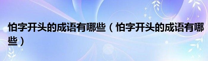 大家好,小生来为大家讲解下。怕字开头的成语有哪些,怕字开头的成语有哪些很多人还不知道,现在让我们一起来看看吧!