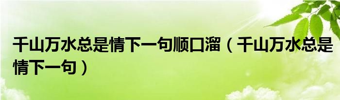 大家好,小生来为大家讲解下。千山万水总是情下一句顺口溜,千山万水总是情下一句很多人还不知道,现在让我们一起来看看吧!