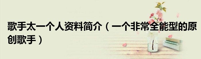 大家好,伊人来为大家解答以上问题。歌手太一个人资料简介,一个非常全能型的原创歌手很多人还不知道,现在让我们一起来看看吧!