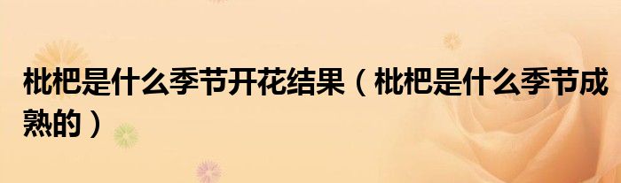 大家好,小生来为大家讲解下。枇杷是什么季节开花结果,枇杷是什么季节成熟的很多人还不知道,现在让我们一起来看看吧!