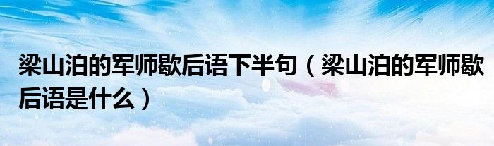 大家好,小生来为大家讲解下。梁山泊的军师歇后语下半句,梁山泊的军师歇后语是什么很多人还不知道,现在让我们一起来看看吧!
