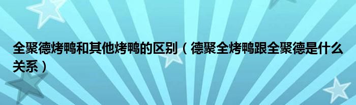 大家好,小生来为大家讲解下。全聚德烤鸭和其他烤鸭的区别,德聚全烤鸭跟全聚德是什么关系很多人还不知道,现在让我们一起来看看吧!