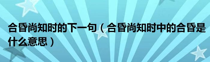 大家好,小生来为大家讲解下。合昏尚知时的下一句,合昏尚知时中的合昏是什么意思很多人还不知道,现在让我们一起来看看吧!
