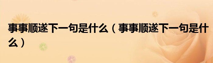 大家好,小生来为大家讲解下。事事顺遂下一句是什么,事事顺遂下一句是什么很多人还不知道,现在让我们一起来看看吧!