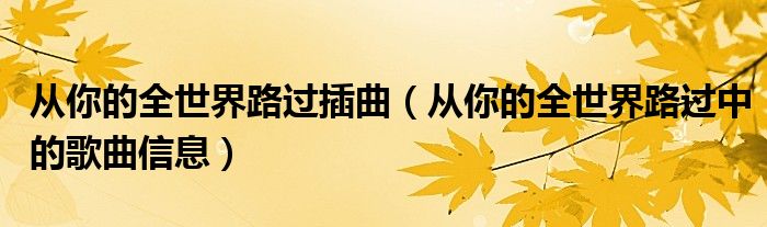 大家好,伊人来为大家解答以上问题。从你的全世界路过插曲,从你的全世界路过中的歌曲信息很多人还不知道,现在让我们一起来看看吧!