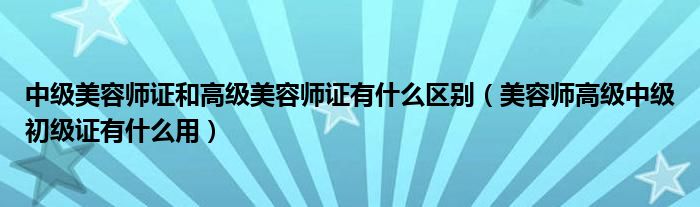 大家好,小生来为大家讲解下。中级美容师证和高级美容师证有什么区别,美容师高级中级初级证有什么用很多人还不知道,现在让我们一起来看看吧!
