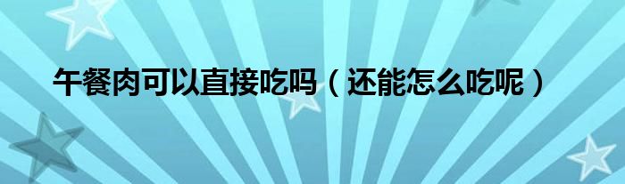 大家好,伊人来为大家解答以上问题。午餐肉可以直接吃吗,还能怎么吃呢很多人还不知道,现在让我们一起来看看吧!