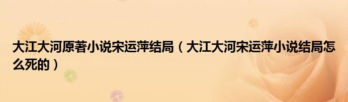 大家好,小生来为大家讲解下。大江大河原著小说宋运萍结局,大江大河宋运萍小说结局怎么死的很多人还不知道,现在让我们一起来看看吧!