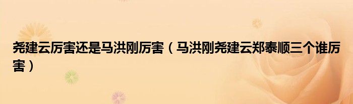 大家好,小生来为大家讲解下。尧建云厉害还是马洪刚厉害,马洪刚尧建云郑泰顺三个谁厉害很多人还不知道,现在让我们一起来看看吧!