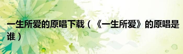 大家好,小生来为大家讲解下。一生所爱的原唱下载,《一生所爱》的原唱是谁很多人还不知道,现在让我们一起来看看吧!