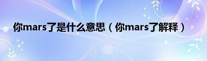 大家好,伊人来为大家解答以上问题。你mars了是什么意思,你mars了解释很多人还不知道,现在让我们一起来看看吧!