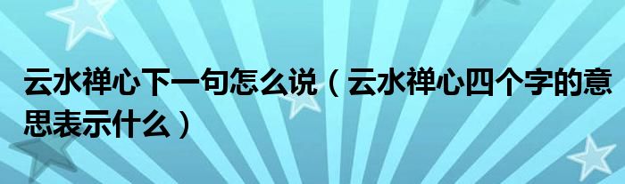 大家好,小生来为大家讲解下。云水禅心下一句怎么说,云水禅心四个字的意思表示什么很多人还不知道,现在让我们一起来看看吧!