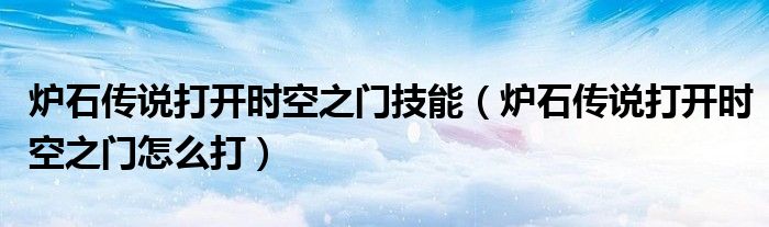 大家好,小生来为大家讲解下。炉石传说打开时空之门技能,炉石传说打开时空之门怎么打很多人还不知道,现在让我们一起来看看吧!