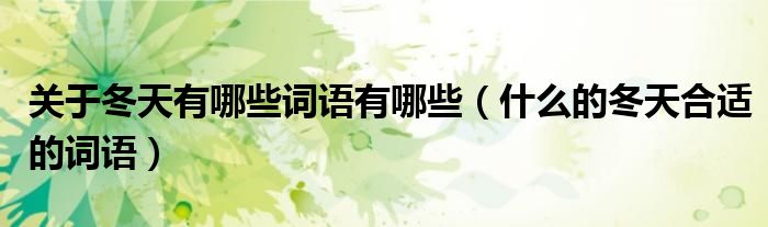 大家好,小生来为大家讲解下。关于冬天有哪些词语有哪些,什么的冬天合适的词语很多人还不知道,现在让我们一起来看看吧!