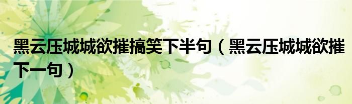 大家好,小生来为大家讲解下。黑云压城城欲摧搞笑下半句,黑云压城城欲摧下一句很多人还不知道,现在让我们一起来看看吧!