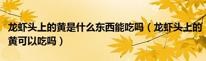 大家好,伊人来为大家解答以上问题。龙虾头上的黄是什么东西能吃吗,龙虾头上的黄可以吃吗很多人还不知道,现在让我们一起来看看吧!