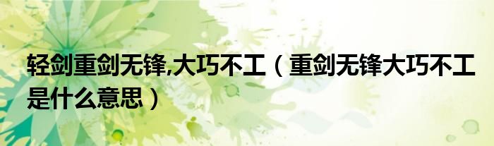 大家好,小生来为大家讲解下。轻剑重剑无锋,大巧不工,重剑无锋大巧不工是什么意思很多人还不知道,现在让我们一起来看看吧!