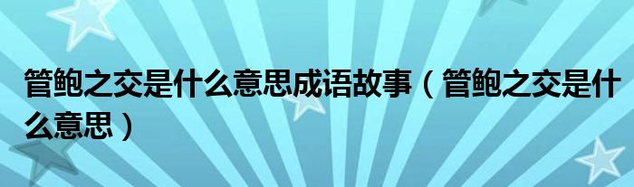 大家好,小生来为大家讲解下。管鲍之交是什么意思成语故事,管鲍之交是什么意思很多人还不知道,现在让我们一起来看看吧!