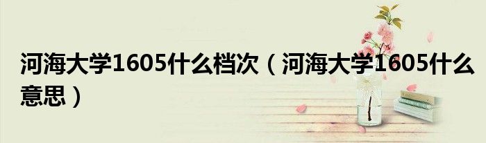 大家好,小生来为大家讲解下。河海大学1605什么档次,河海大学1605什么意思很多人还不知道,现在让我们一起来看看吧!