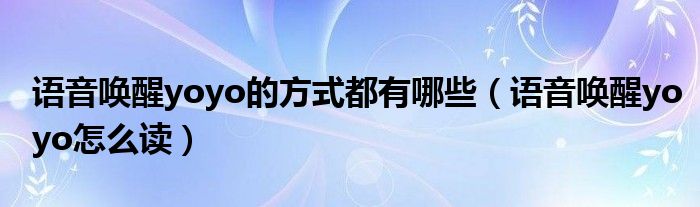 大家好,小生来为大家讲解下。语音唤醒yoyo的方式都有哪些,语音唤醒yoyo怎么读很多人还不知道,现在让我们一起来看看吧!